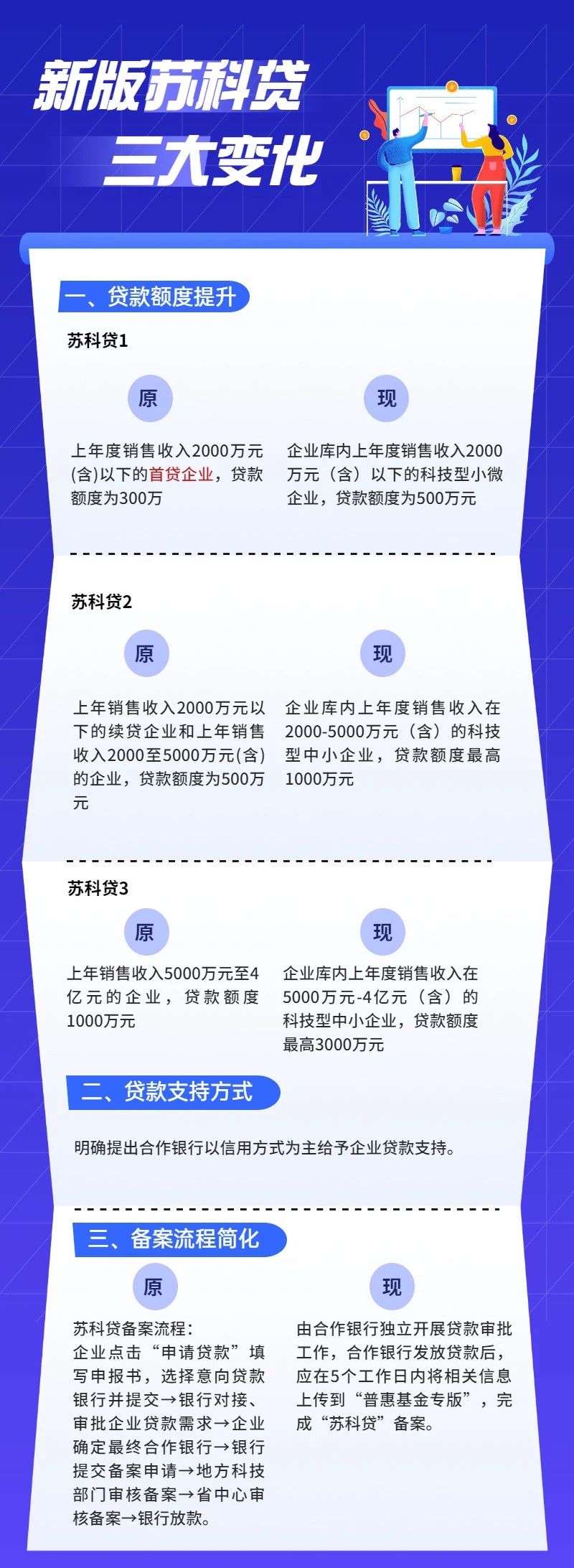 1.省財(cái)政廳會(huì)同省科技廳在 “江蘇省普惠金融發(fā)展風(fēng)險(xiǎn)補(bǔ)償基金”項(xiàng)下設(shè)立“蘇科貸”子產(chǎn)品,為“蘇科貸”備選企業(yè)庫(kù)(簡(jiǎn)稱“企業(yè)庫(kù)”)內(nèi)符合國(guó)家劃型標(biāo)準(zhǔn)的科技型中小微企業(yè)提供低門檻、低成本的信貸支持。 “蘇科貸”依托省普惠金融發(fā)展風(fēng)險(xiǎn)補(bǔ)償基金專版(簡(jiǎn)稱“普惠基金專版”)實(shí)現(xiàn)全流程信息化管理。省財(cái)政廳根據(jù)省與市(縣)風(fēng)險(xiǎn)補(bǔ)償基金規(guī)模、不良貸款情況等,每年確定“蘇科貸”年度投放額度上限。